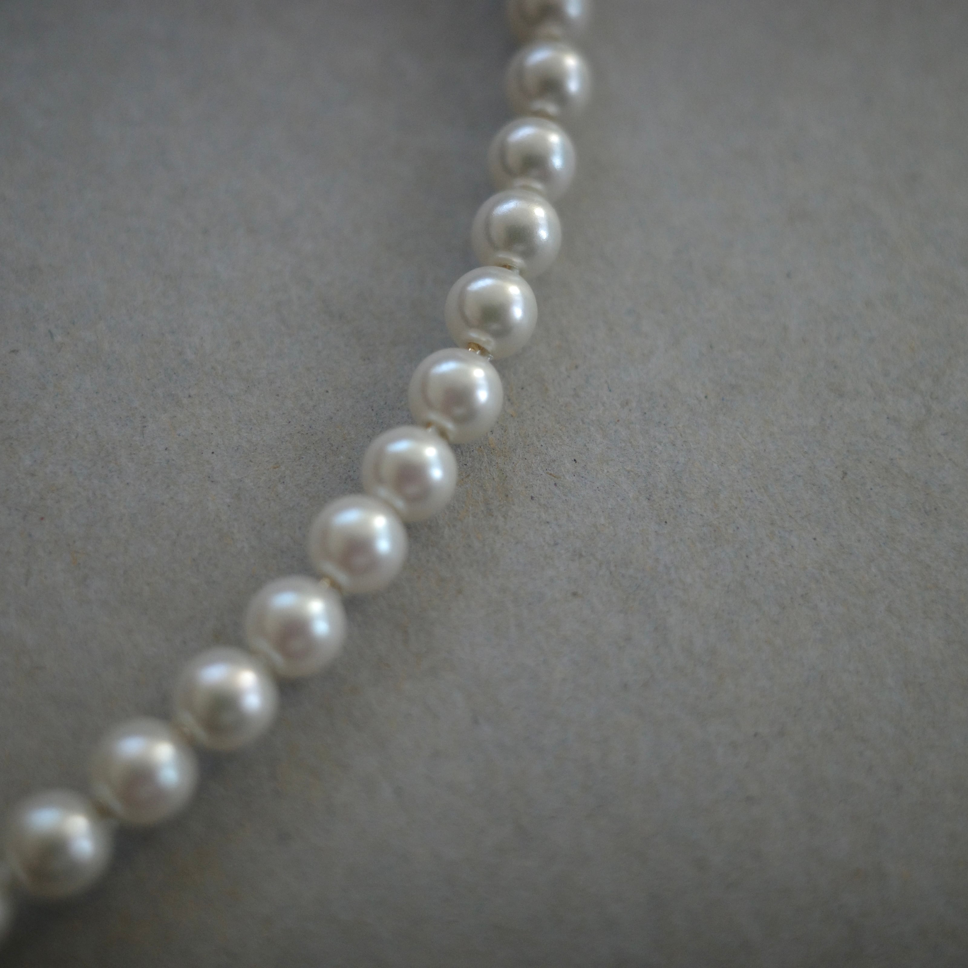 肌馴染みのいいホワイトカラーのパールチョーカー。
