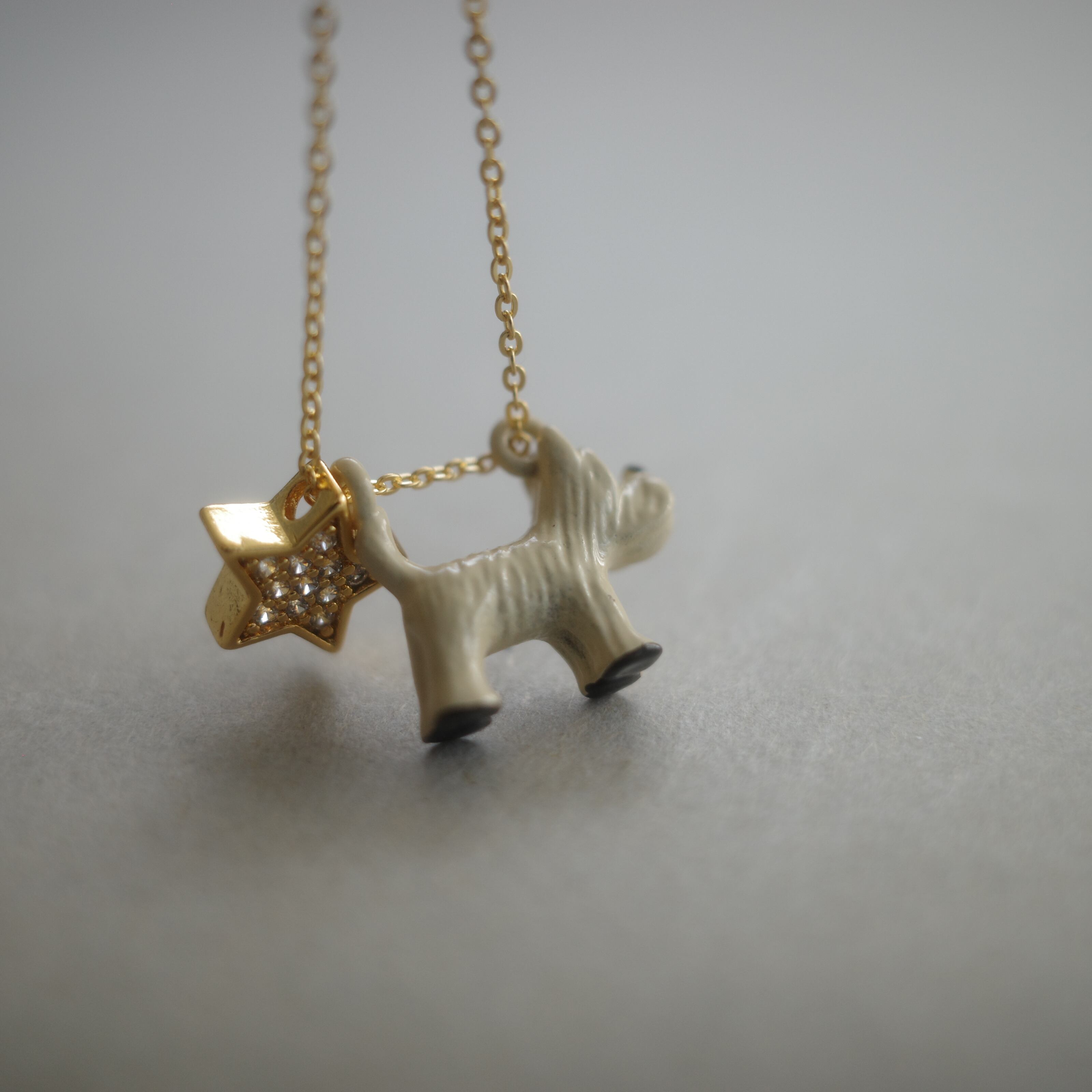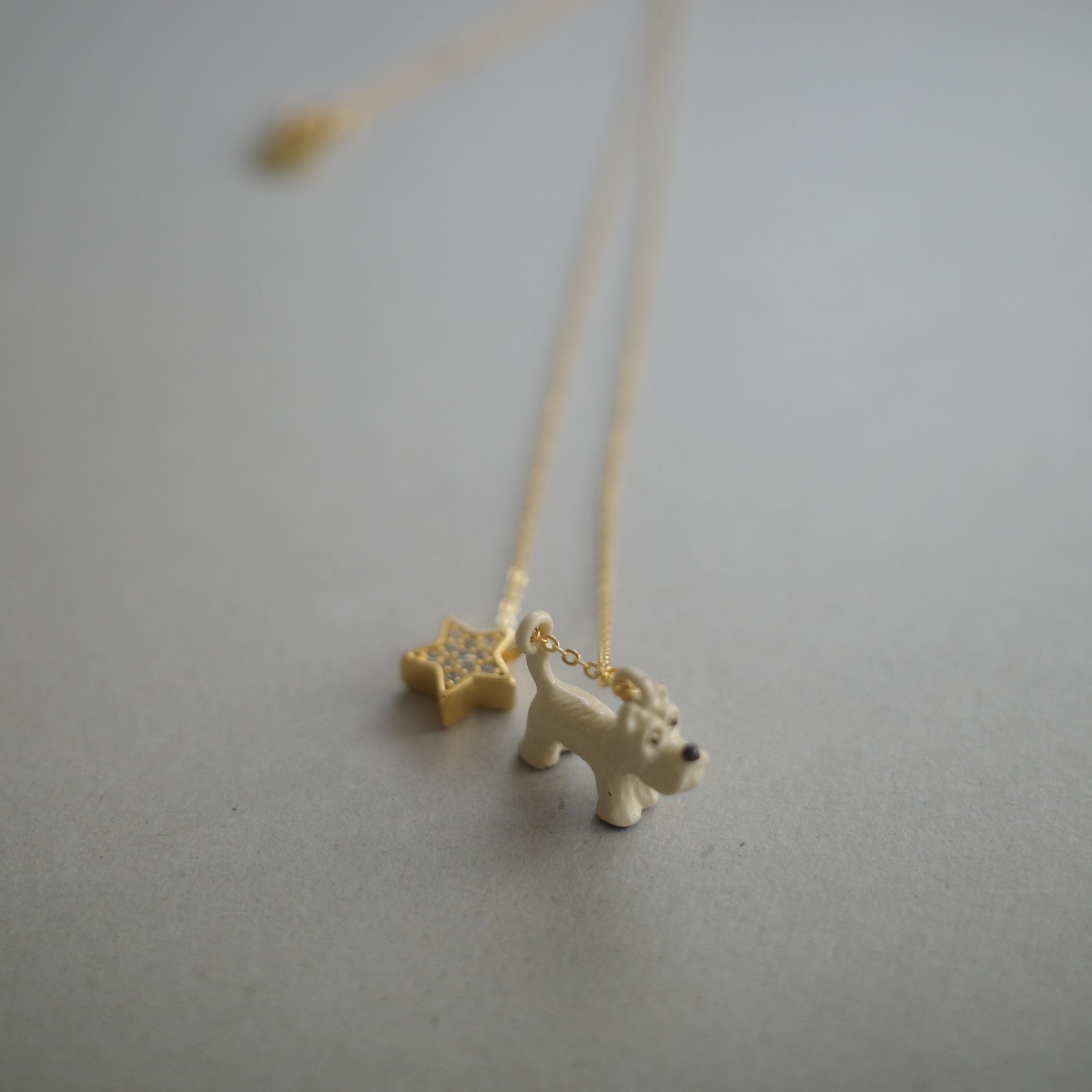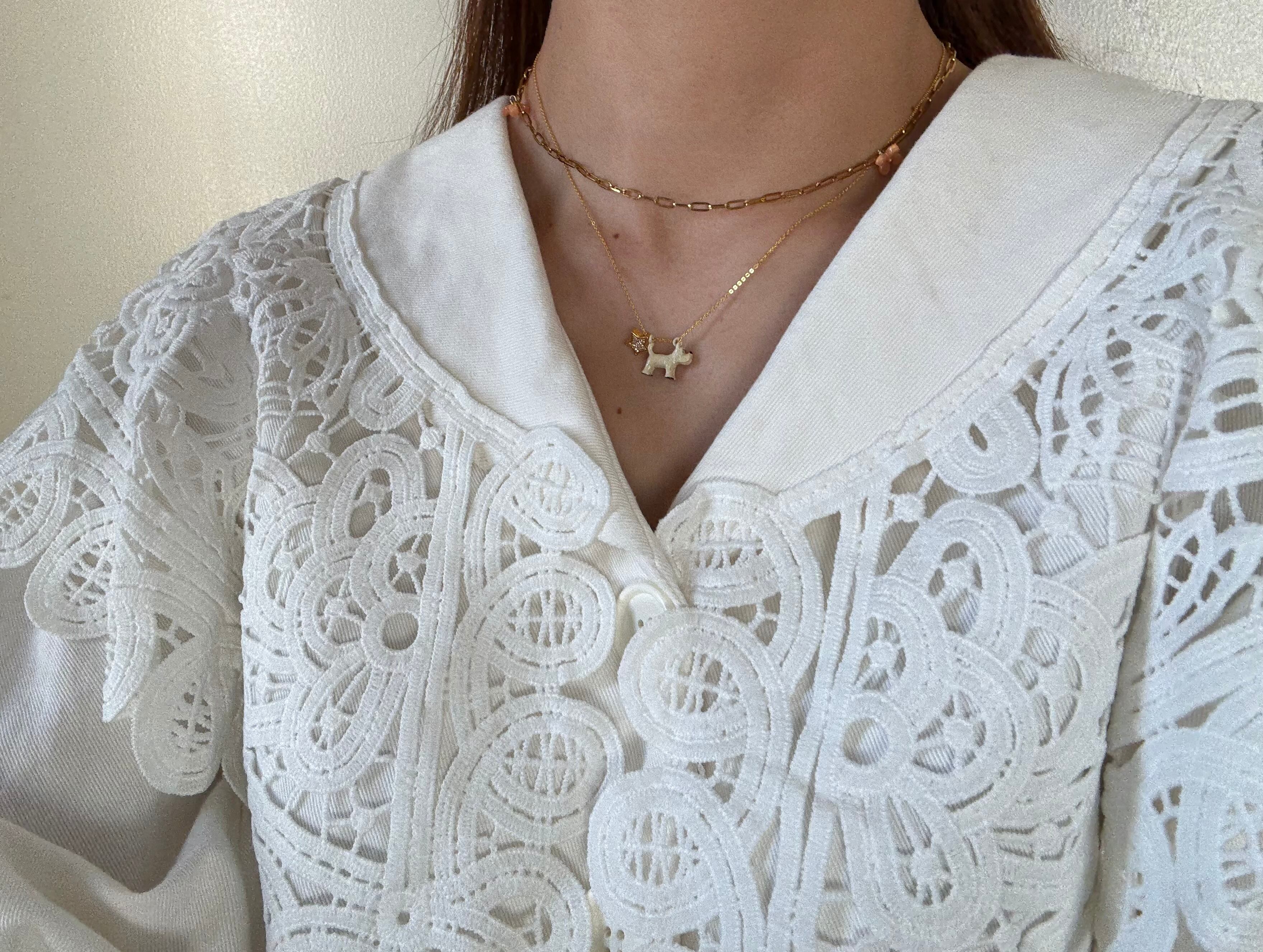 少し長めのチェーンなので、ゆったりと首元でお散歩できます。