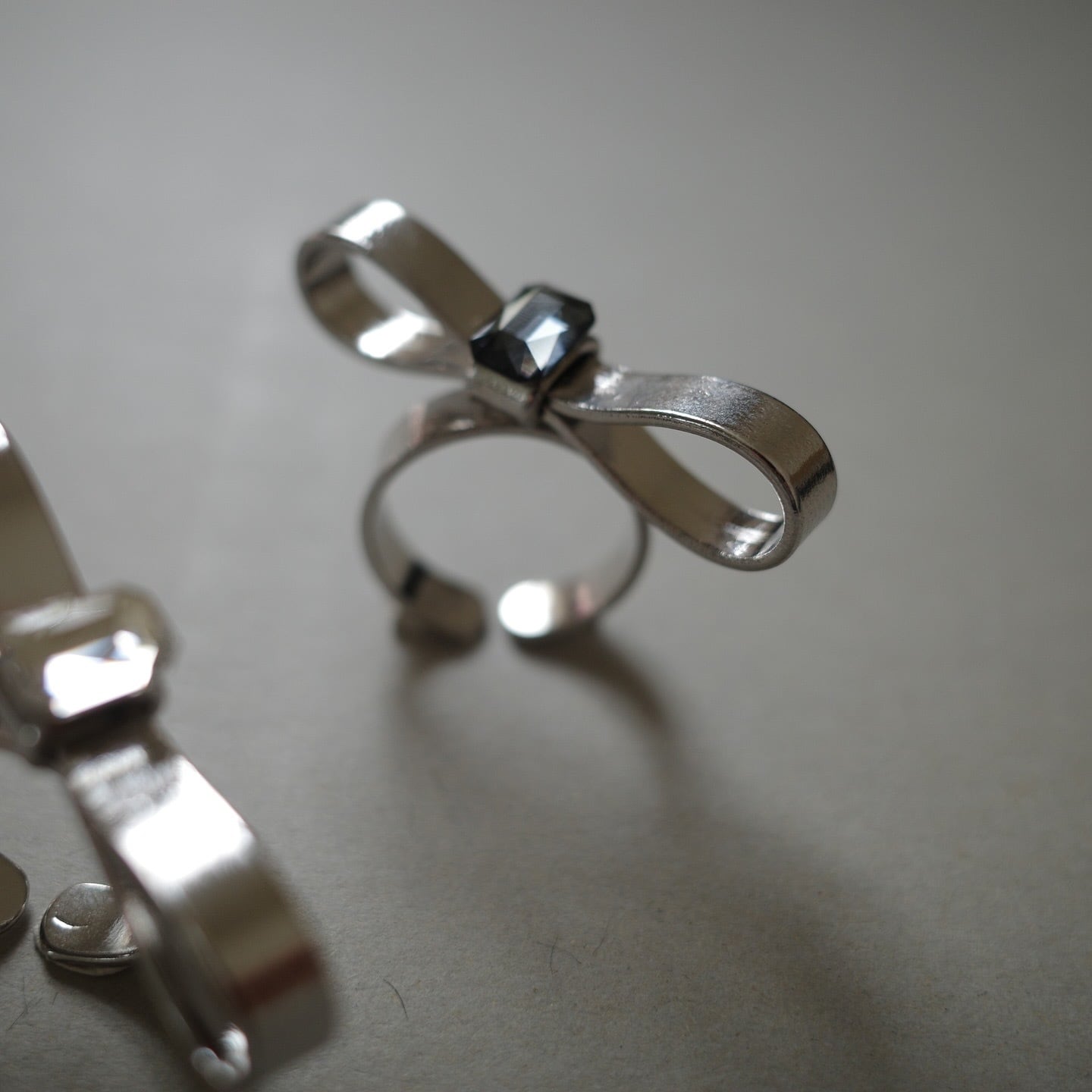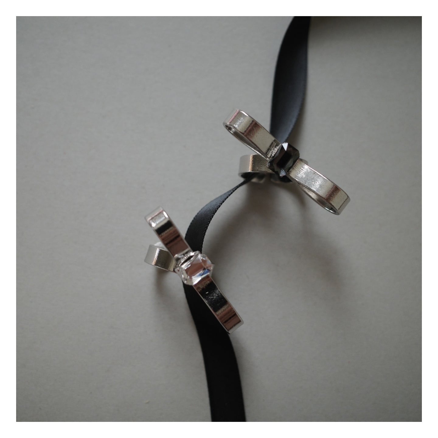 シルバーにクリアブラック・クリアを合わせて、よりモードなリボンに仕上げました。