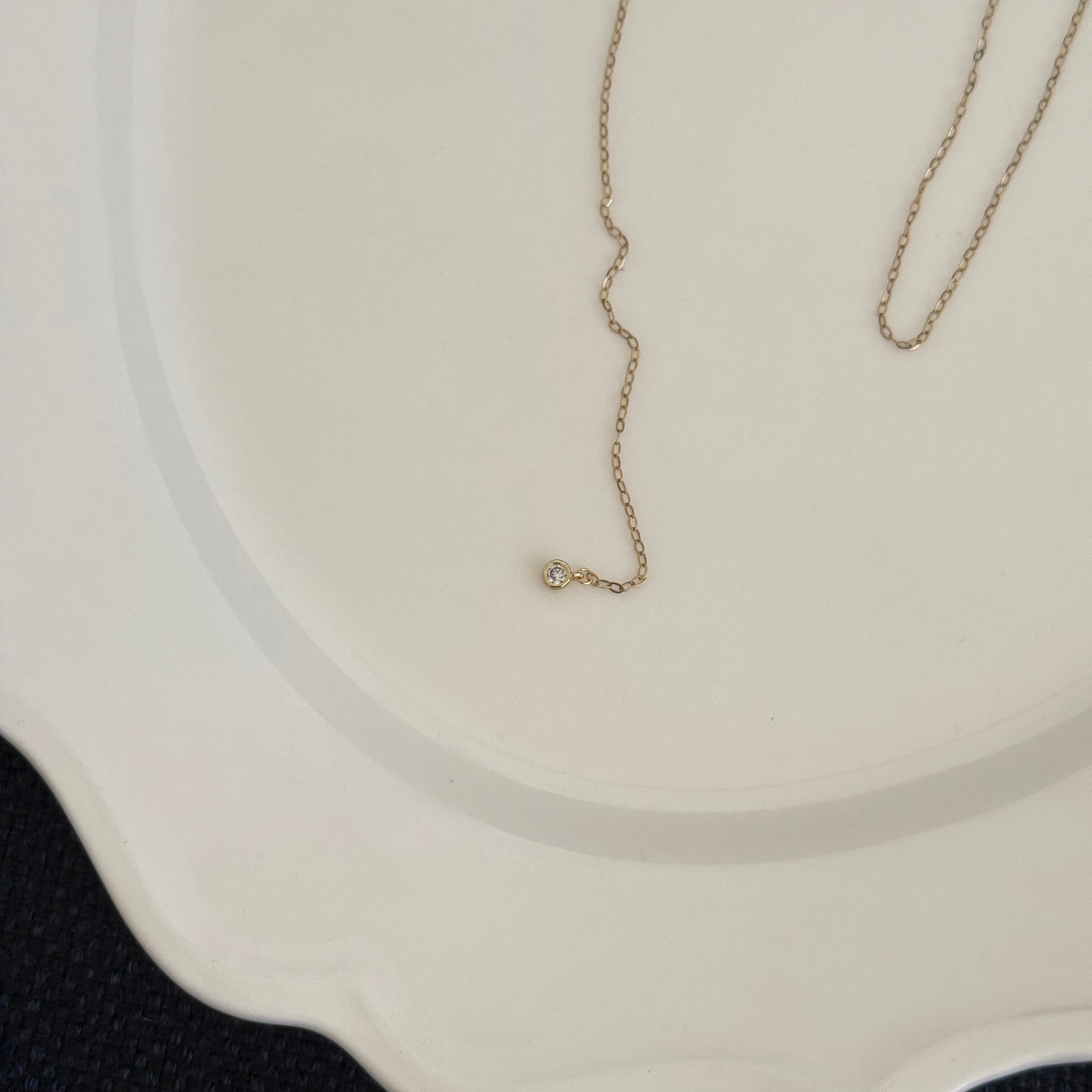 甘さと切なさが溶け合う華奢なチェーンと、その先に輝きながら揺れる雫。