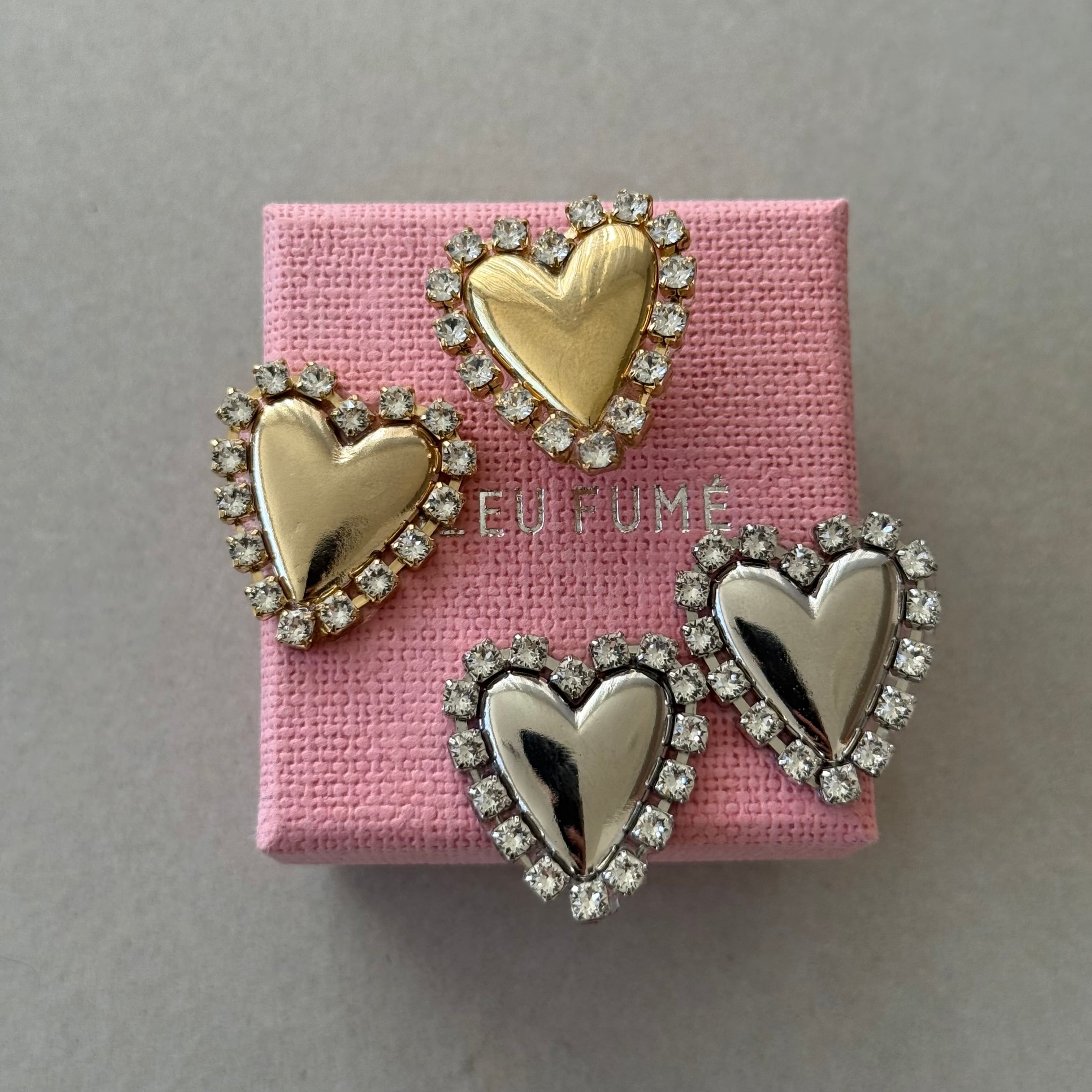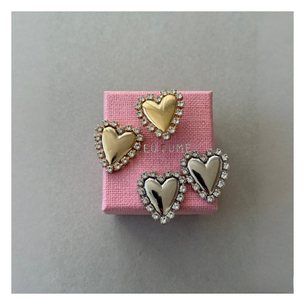 艶やかなメタリックハートを主役に、繊細なスワロフスキーをぐるりとあしらったピアス/イヤリングです。