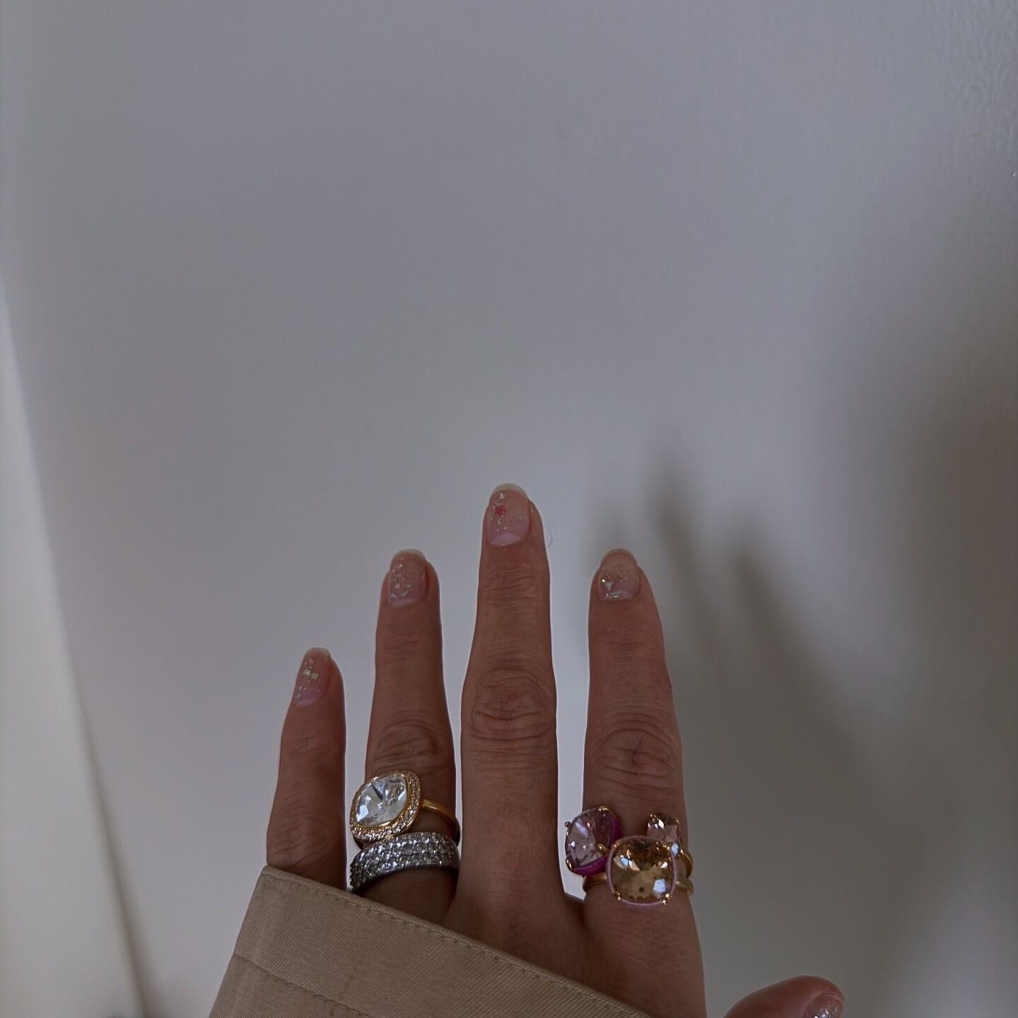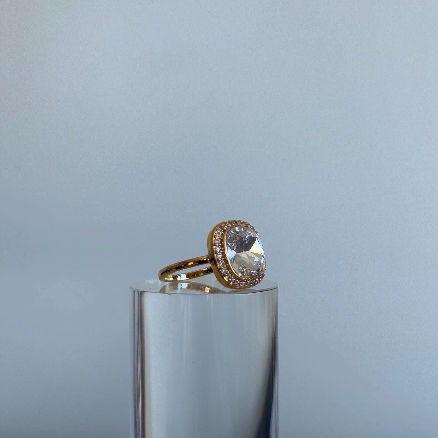 大き目のスワロフスキーが印象的な輝きを発するリング。