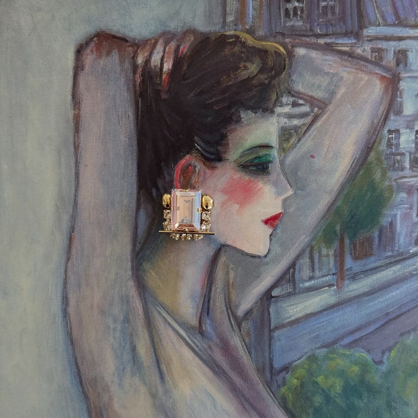 スモーキーなピンクにイエローのベールを纏ったような輝きをお楽しみください。