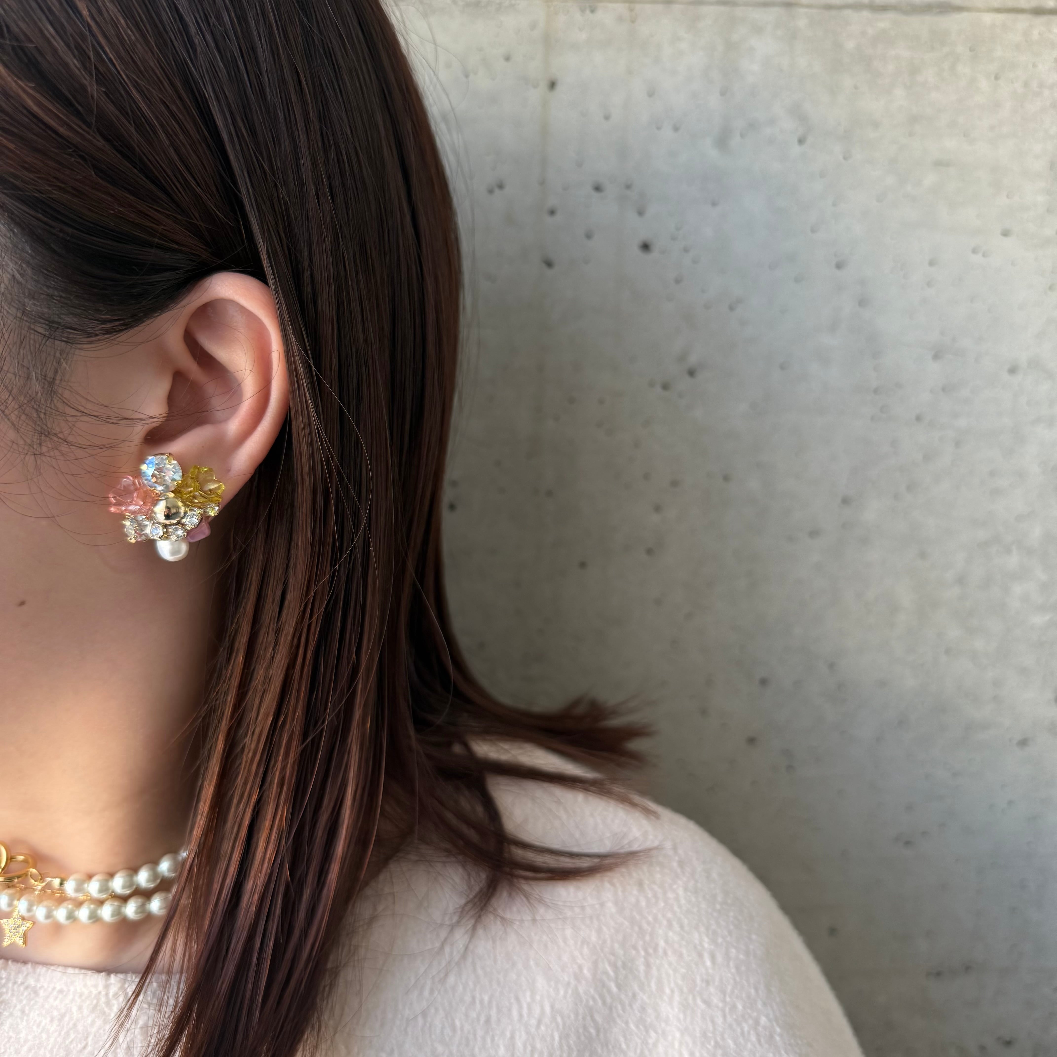 淡水パールやスワロフスキーなどをぎゅっと詰め込んだ、キラキラビジューです。
